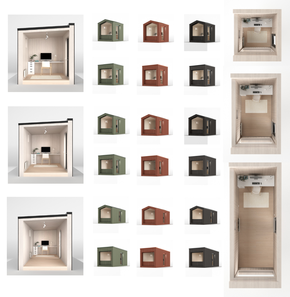 HOLK Kontor finns i tre storlekar: 7, 10 och 15 kvm byggarea. Den erbjuder samma genomtänkta arkitektur och formspråk som våra övriga modeller. Här får du en plats som förenar funktion och estetik, där du kan arbeta ostört men ändå nära naturen.