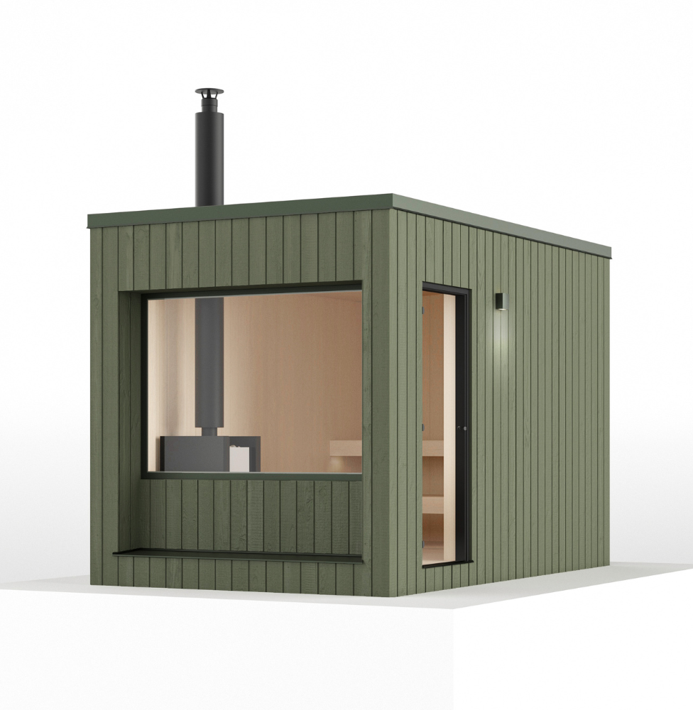 Bastun levereras med ett vedeldat Harvia 22-aggregat, komplett med skorstenspaket och bastustenar. Aggregatet levereras med skyddsplåt runt om och ett golvskydd under, vilket ger en trygg och säker installation. En traditionell värmekälla som ger behaglig värme och den där genuina bastukänslan.