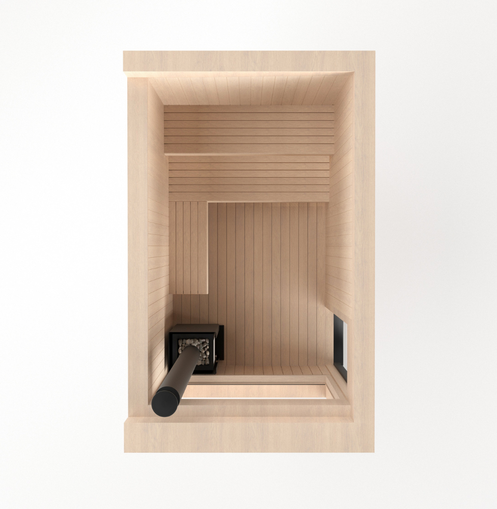 HOLK Bastu 10 – En rymlig bastu för gemenskap och avkoppling. Här får du gott om plats tack vare den längre nedersta laven som löper längs holkens långsida och skapar en mer öppen och inbjudande sittmiljö. Tillsammans med det vedeldade aggregatet och den mjuka belysningen formas en varm, harmonisk atmosfär. En bastu där du kan njuta av långa, lugna stunder, själv eller tillsammans med andra.