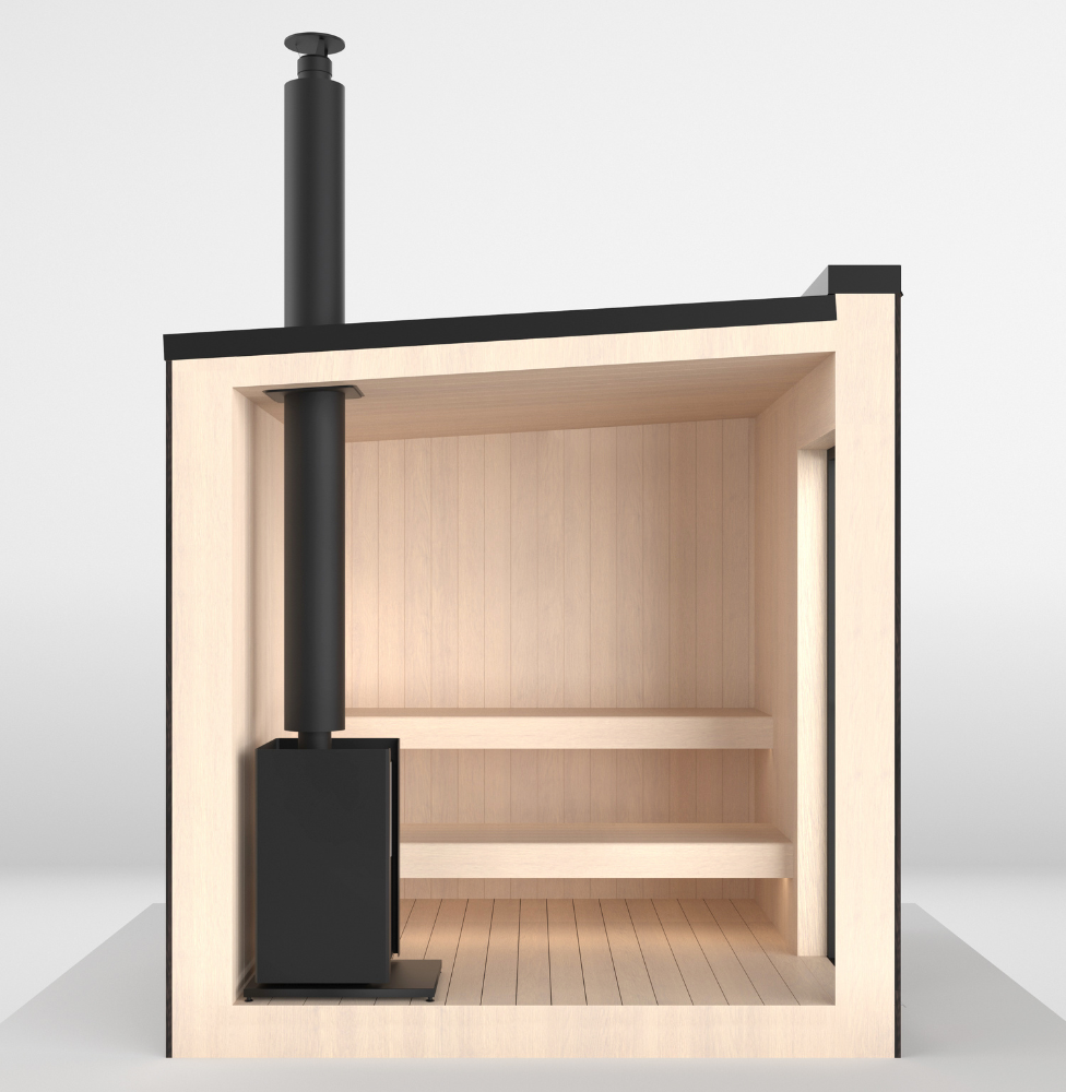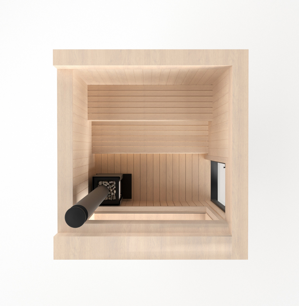 HOLK Bastu 07 – En kompakt bastu där värme möter avkoppling. Den smart planerade ytan rymmer både platsbyggda lavar och ett vedeldat aggregat som skapar mjuk, behaglig värme. Här finns plats för lugna stunder, avkopplande ritualer och tid tillsammans – en liten fristad där du kan varva ner och njuta av värmen, året runt.
