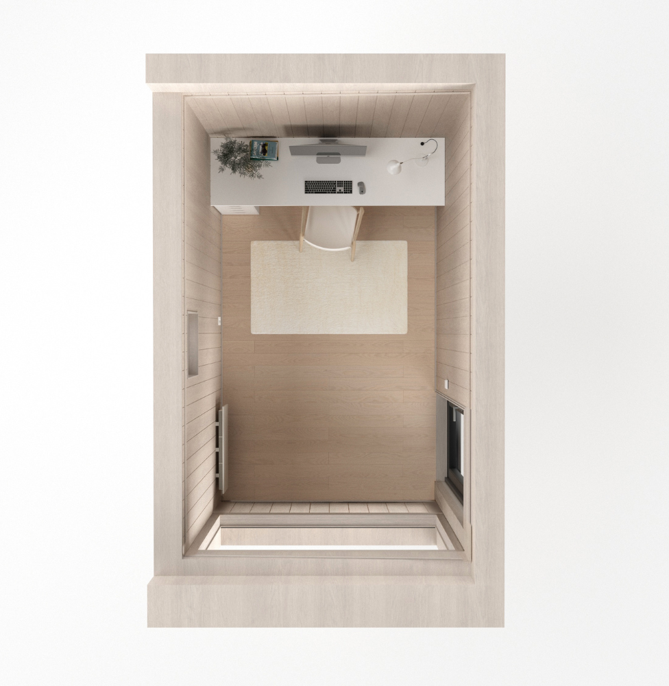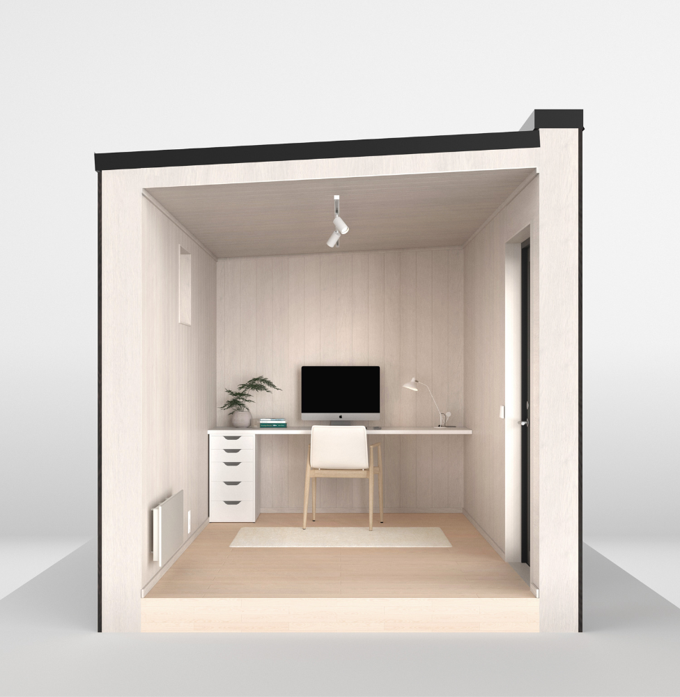 HOLK Kontor 10 – Ett medelstort kontor där funktion möter flexibilitet. Den välplanerade ytan rymmer ett platsbyggt skrivbord och praktisk förvaring, samtidigt som det finns plats för fler aktiviteter – från möten och kreativa projekt till avkoppling mellan arbetsuppgifterna.