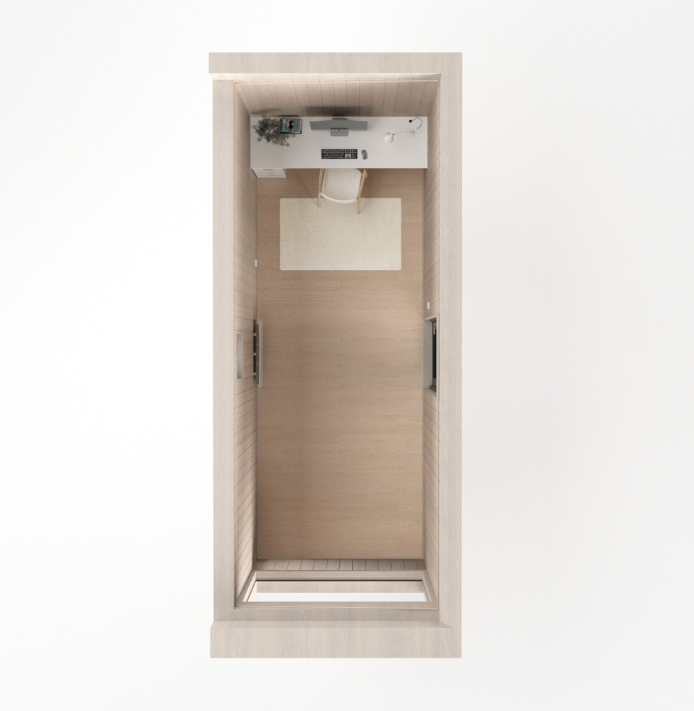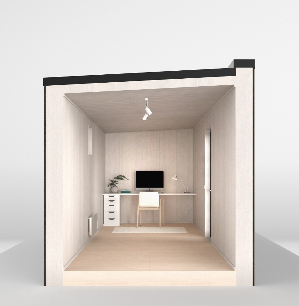 HOLK Kontor 15 – Ett rymligt kontor som ger dig frihet att forma utrymmet efter egna behov. Här finns gott om plats att kombinera det platsbyggda skrivbordet och den praktiska hurtsen med exempelvis en liten loungehörna, ett mötesområde eller plats för kreativt arbete. Stora fönster släpper in ljus och ger rummet en luftig känsla, medan naturmaterial och omsorgsfullt utvalda detaljer skapar en varm och inbjudande atmosfär – perfekt för både fokus och flexibilitet.