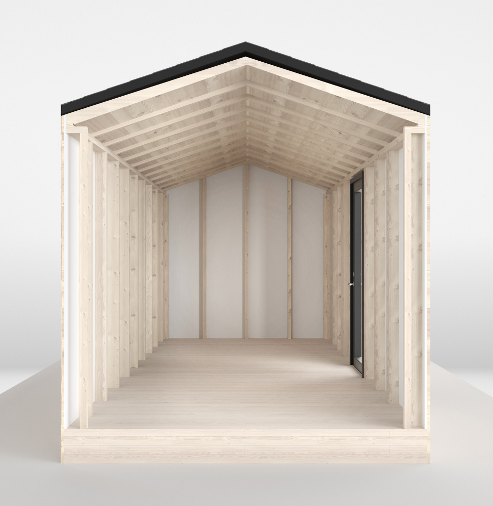 HOLK Rå 15 – Den största i vår Rå-serie. En komplett byggnad på utsidan men helt öppen på insidan – här finns plats för att skapa allt från tonårsrum till studio eller ett kombinerat hobby- och förvaringsrum. Utan framdragen el får du själv möjlighet att anpassa ytterligare efter dina egna önskemål.