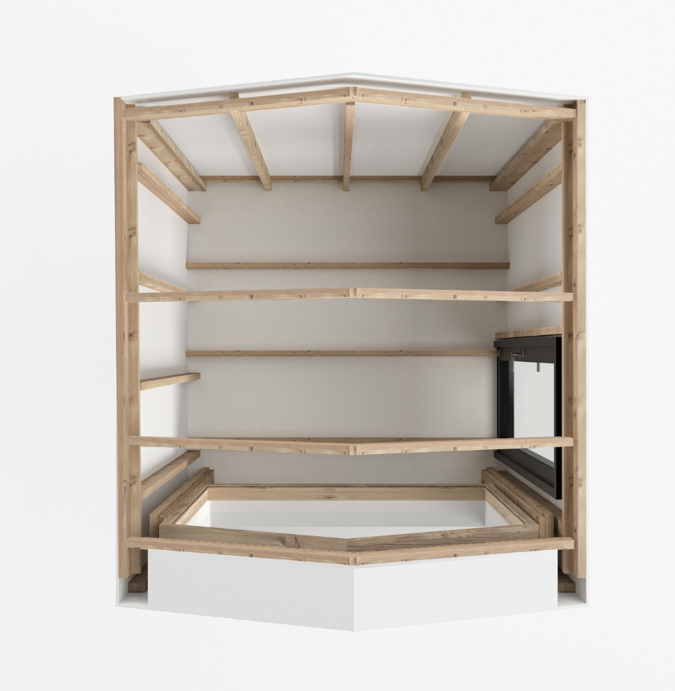 HOLK Rå kommer helt öppen invändigt, det vill säga oisolerad och utan både väggpanel och golv. Det ger dig fria händer att själv anpassa allting!